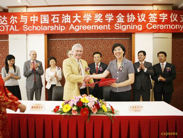 5月23日,我校與道達爾公司簽署獎學金設立與管理協議。從今年開始,今后五年內,道達爾公司每年將為我校25名品學兼優的家庭經濟相對困難的學生提供5000元(RMB)/人的勵志獎學金。校長張來斌、黨委副書記吳小林等校領導出席了簽字儀式,張來斌校長向客人介紹了學校的歷史和目前的發展現狀,吳小林副書記代表學校與到道達爾公司的代表在協議書上簽字。