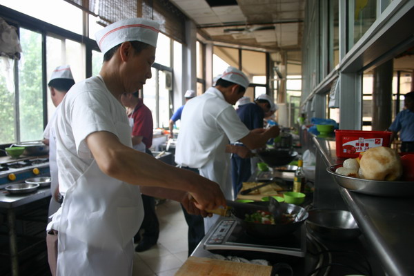 本次大賽評委由飲食中心各餐廳負責人組成。以成品的味道、質感、觀感、營養衛生、綜合工藝等五個方面為標準進行評比,比賽現場緊張又熱鬧,每一位參賽選手都拿出了自己的絕活。選手們精心制作了各具特色的30道美味佳肴,其中有愛心奧運、奧運圣火、五彩拼盤、金魚戲蓮、紅酒雞翅、韓式香辣魷魚卷、孜然羊肉等。