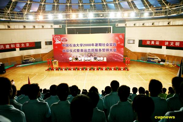 會前,我校2000余名奧運志愿服務人員高喊“中國加油,奧運加油”的口號,表達了他們對北京奧運的真切祝福。大會在莊嚴的國歌聲中拉開帷幕。2008年是中國的奧運之年,是改革開放30周年,也是我校建校55周年,因此今年的社會實踐將具有更為深刻的特殊意義。