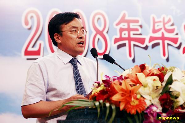張來斌校長在典禮上發表了熱情洋溢的講話。他說,“時光如梭,去而不返”,同學們在石大的幾年時光里,咀嚼了大學生活的酸甜苦辣,見證了學校這幾年取得的輝煌成就。同時,也把對學校事業的奉獻融入到中國石油大學55年的輝煌歷程之中。
