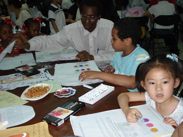 活動最吸引人的一項是中蘇兩國兒童共同繪制奧運會徽和奧運標志。此舉象征著不同國籍,不同膚色人們的共同奧運精神。孩子們攜手共同,體現了兩國人民之間的友好關系。一名蘇丹兒童還向在座者展示了綠色布制環保袋,提倡減少塑料袋的使用,保持環境衛生。
