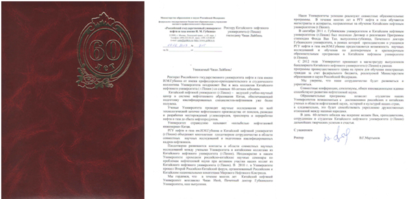 我校的學者和來自中國石油大學的同行們在聯合科研領域的交流愈發密切。在我們學校不止一次地舉行了關于石油科學問題的中俄科學研討會,來自中國石油大學的同行們都積極地參與了研討會。2010年,由世界石油大會俄羅斯和中國全國委員會舉辦的第二屆中俄論壇在我校舉行。