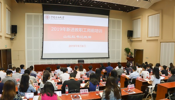 在慶祝新中國成立70周年和喜迎第35個教師節之際,為使新進教職工全面了解學校,更快地融入學校的工作和生活,9月6日至10日,中國石油大學組織開展2019年新進教職工崗前培訓。本次培訓分為集中培訓、參觀與拓展培訓和職業技能培訓等環節。黨委書記山紅紅、校長張來斌、副校長吳小林,67名新進教職工參加了培訓開班儀式。吳小林主持開班儀式。