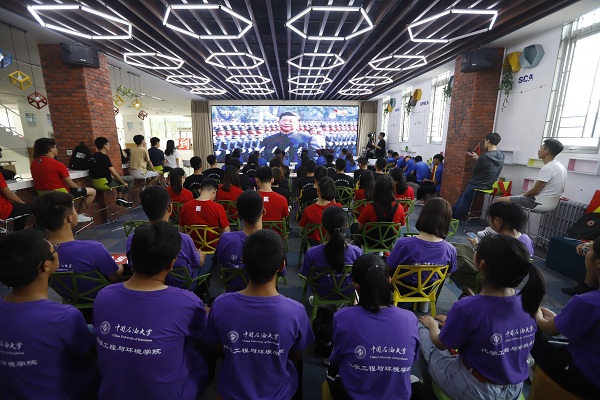 學(xué)校黨委高度重視收聽收看慶祝大會(huì)直播工作,學(xué)校在學(xué)生活動(dòng)中心、教室、食堂等設(shè)置了集中收看場地,各學(xué)院以班級(jí)、宿舍為單位組織線上線下觀看直播。