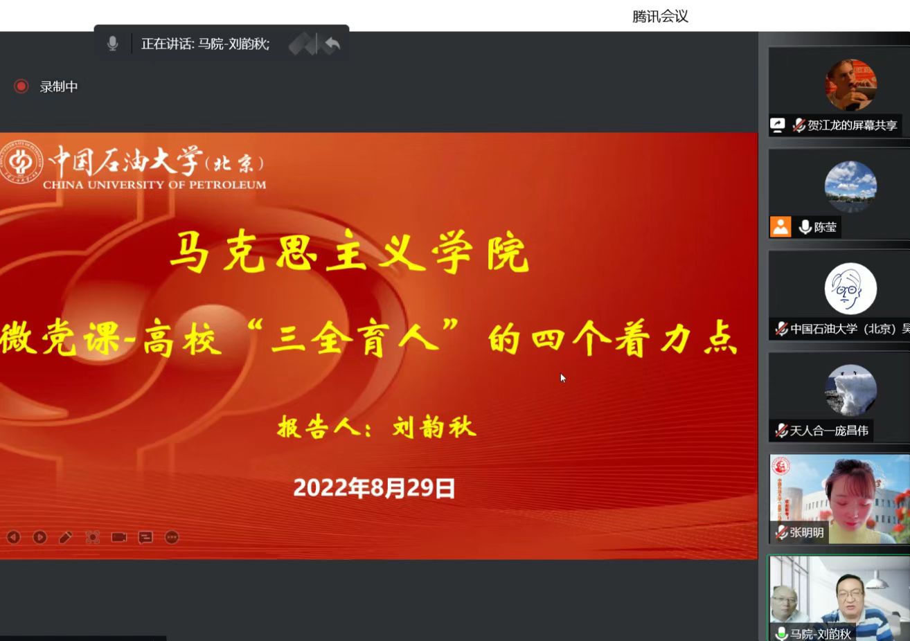 8月29日上午,馬克思主義學院院長、書記線上講授微黨課。