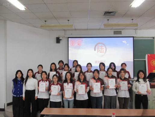 劉彤彤、劉語燦向各學生組織、社團成員頒發聘書并合影留念。