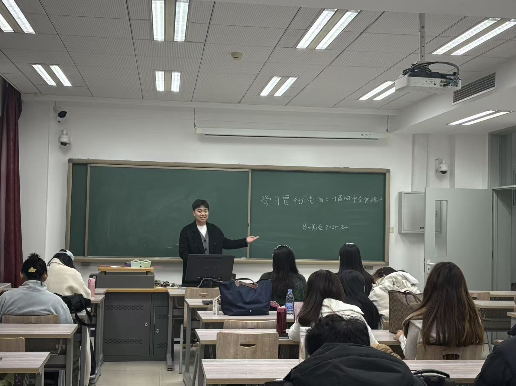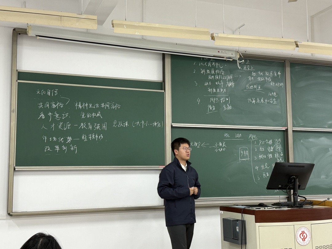 思政25-1班班主任姜林宏通過深入淺出的講解,幫助學生們領會黨的二十屆四中全會重要決策對于國家發展和民族復興的深遠意義。他引導學生們深入思考“六個堅持”基本原則在專業學習中的實踐內涵,以及如何將基本原則轉化為推動個人成長和小我融入大我的實際行動。同學們紛紛表示要將專業學習與國家戰略需求緊密結合學好專業知識,在學習中充分感悟思想政治教育專業的價值引領屬性,堅定政治信仰、塑造擔當意識和培養創新精神。