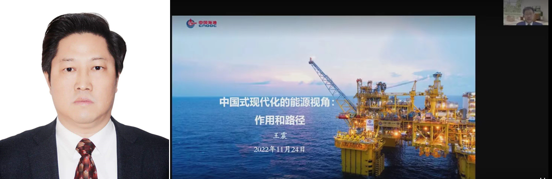 11月24日,中海油集團能源經濟研究院黨委書記、院長王震教授應邀開講中石大“習近平新時代中國特色社會主義思想在京華大地的生動實踐”思政選修課第二模塊戰略篇第五講,作了“中國式現代化的能源視角:作用和路徑”的主題報告。