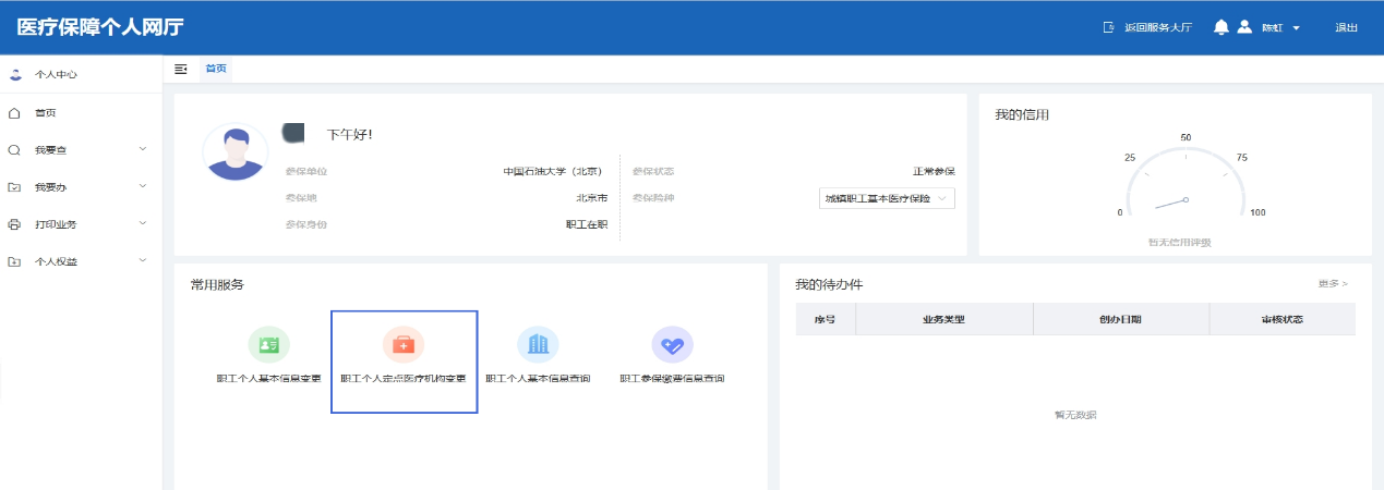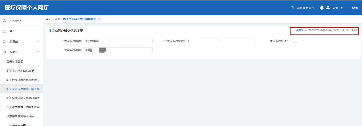 3.登錄后,“職工個(gè)人定點(diǎn)醫(yī)療機(jī)構(gòu)變更”