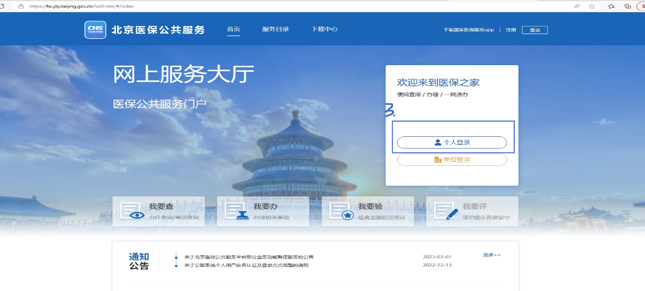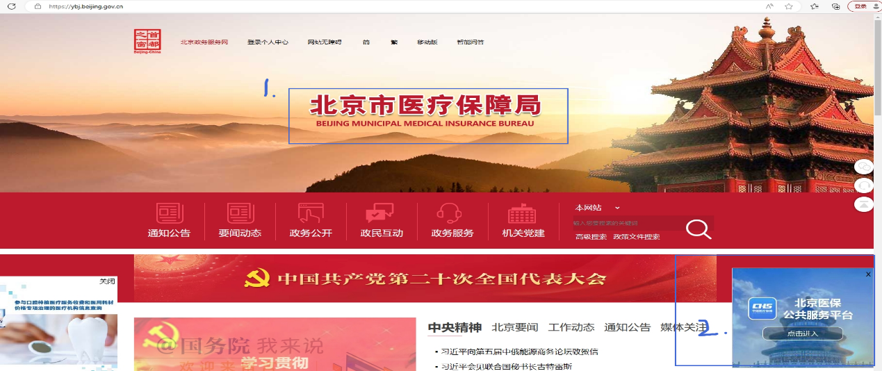 1.登錄北京市醫(yī)療保障局官網(wǎng),網(wǎng)址:http://ybj.beijing.gov.cn,找到北京醫(yī)保公共服務(wù)平臺(tái)。
