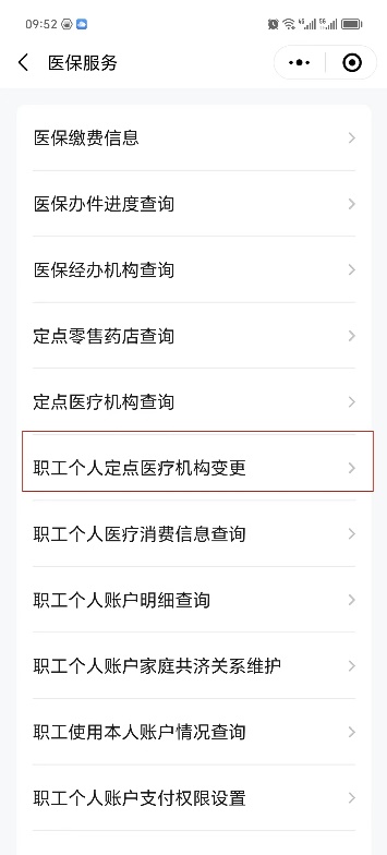 3.點(diǎn)擊進(jìn)入后找到 “職工個(gè)人定點(diǎn)醫(yī)療機(jī)構(gòu)變更”并進(jìn)入