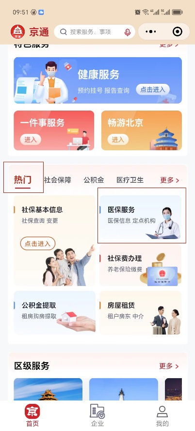 2.找到“熱門”中的“醫(yī)保服務(wù)”