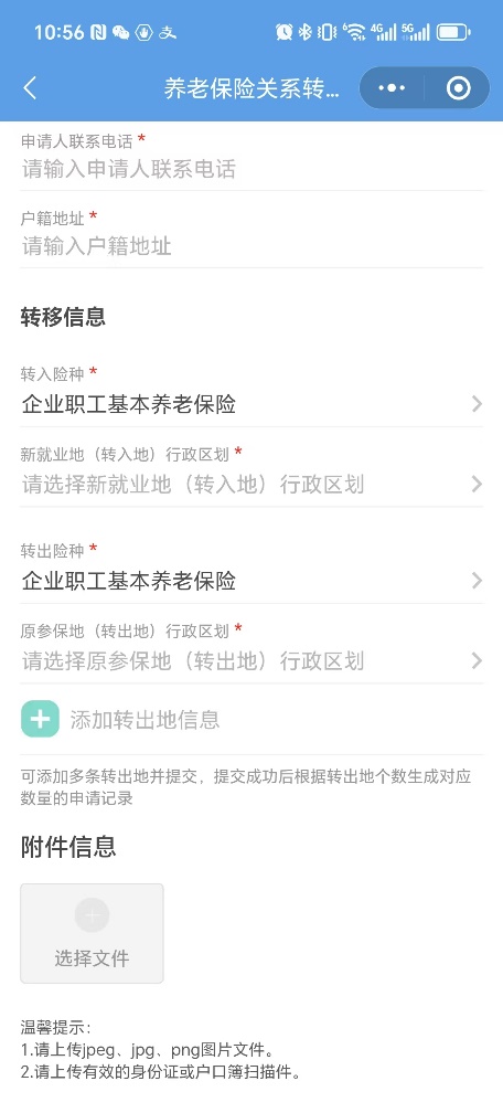 4. 按照提示填寫必填信息并上傳身份證或戶口簿掃描件后提交,等待審核。