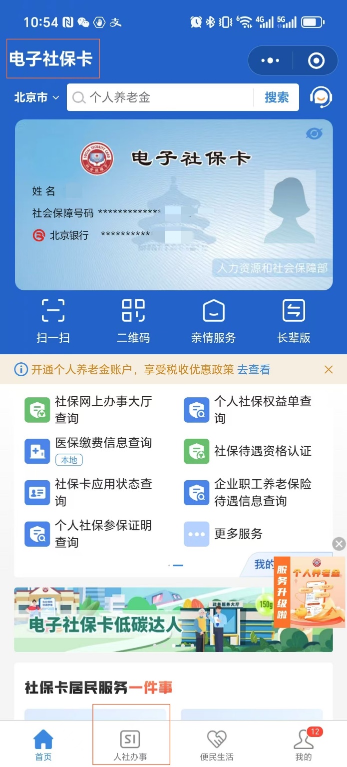 1. 微信、支付寶小程序中找到“電子社保卡”,并按提示注冊或登錄,找到“人社辦事”。