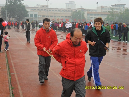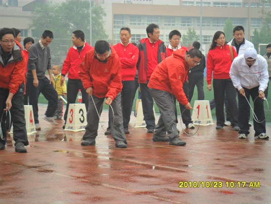 我校教職工趣味運(yùn)動(dòng)會(huì)于2010年10月23日上午舉行。在本次運(yùn)動(dòng)會(huì)中,我院教職工積極踴躍地參加了整個(gè)運(yùn)動(dòng)會(huì),大家團(tuán)結(jié)合作,奮力拼搏,取得了可喜的成績(jī)。在集體項(xiàng)目中,我院老師取得螃蟹賽跑和腳夾球兩項(xiàng)的三等獎(jiǎng);在個(gè)人項(xiàng)目中,甄小東老師和高艷老師分別取得沙包擲準(zhǔn)項(xiàng)目的第三名、第四名。在比賽中,我院教職工充分展現(xiàn)了的同心協(xié)力、奮勇拼搏的精神風(fēng)貌,在黨政工團(tuán)4*50米接力賽項(xiàng)目中,我院領(lǐng)導(dǎo)親自帶隊(duì),為我院全體老師做出了榜樣;在彩虹飛舞項(xiàng)目中,我院16名女老師團(tuán)結(jié)互助,跌倒爬起來(lái)繼續(xù)比賽;在腳夾球項(xiàng)目中,我院男老師相互合作,穩(wěn)中求勝,取得了本項(xiàng)目的三等獎(jiǎng);在時(shí)代列車項(xiàng)目中,我院男、女老師互相配合、團(tuán)結(jié)協(xié)作,充分展現(xiàn)了我院的凝聚力和團(tuán)結(jié)性。
