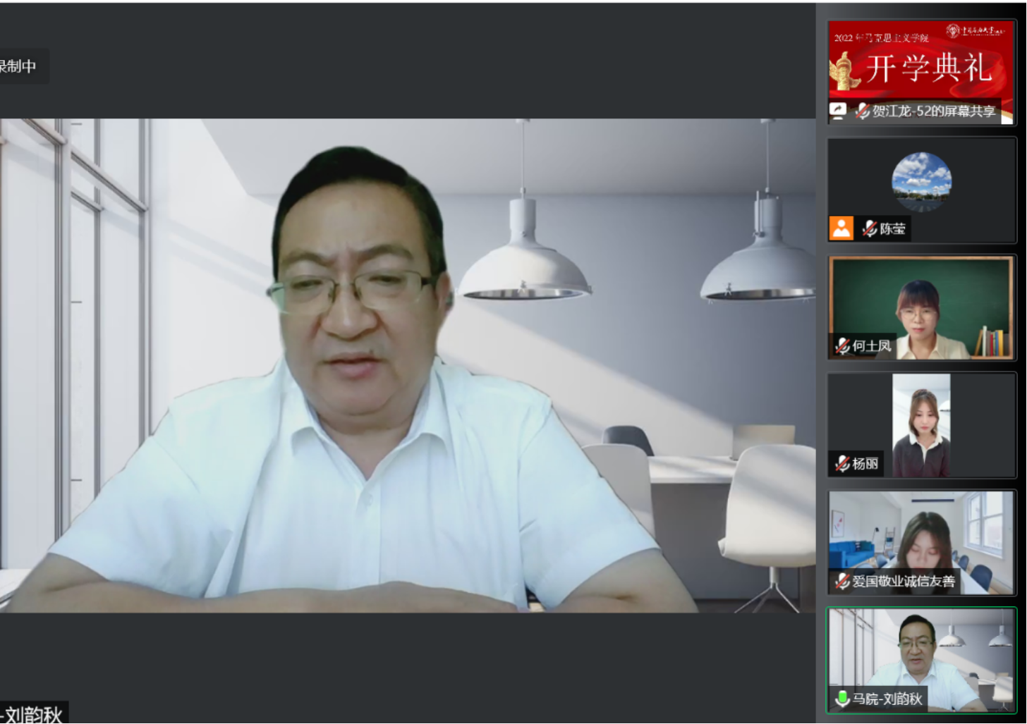 2022年8月22日下午,馬克思主義學(xué)院召開2022級(jí)新生開學(xué)典禮。院領(lǐng)導(dǎo)劉韻秋、張明明、吳建偉,2022級(jí)班主任、輔導(dǎo)員和2022級(jí)全體新生通過線上方式參加典禮。教師何土鳳主持開學(xué)典禮。