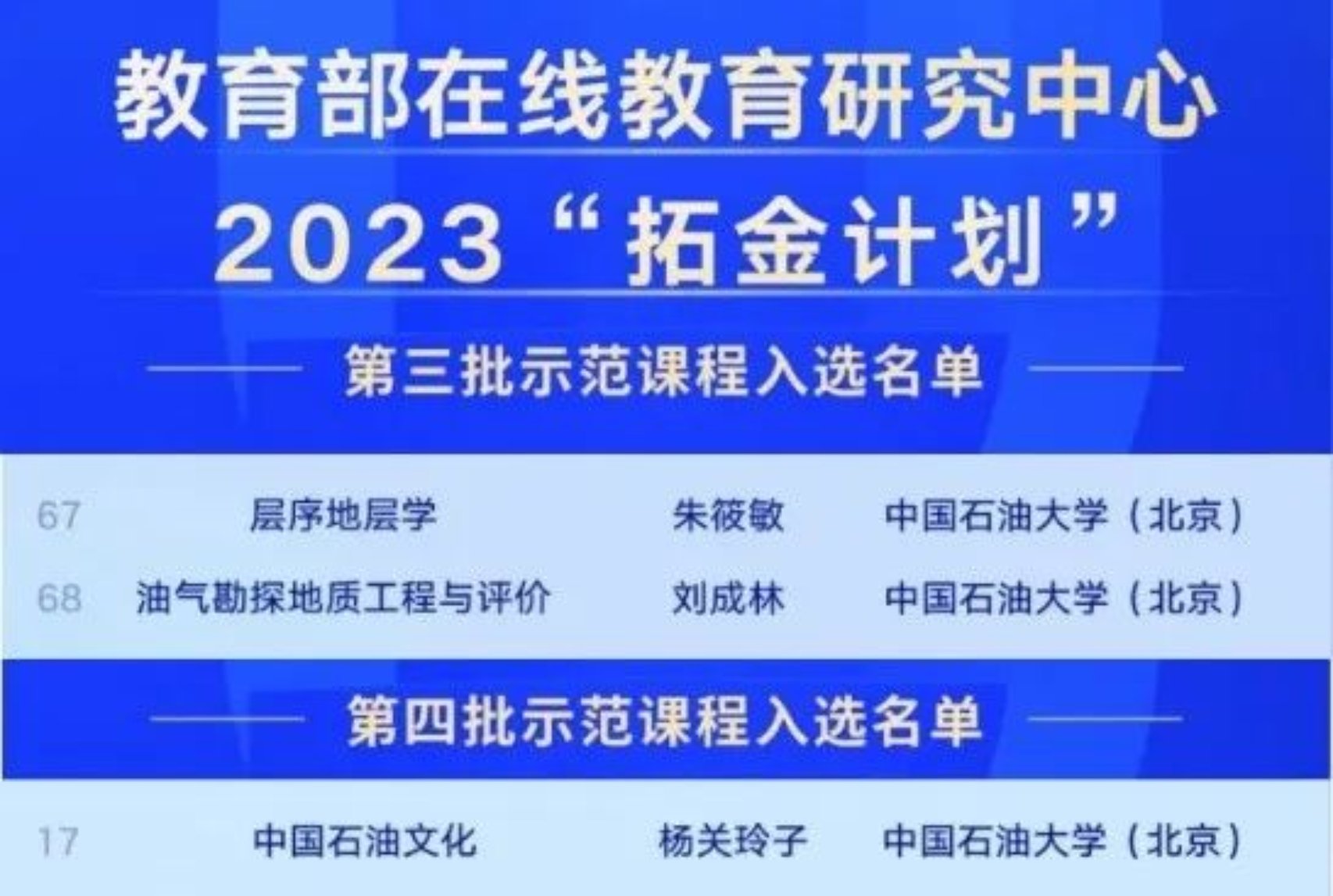 開設《中國石油文化》精品MOOC和“大慶精神(鐵人精神)”系列微課,在線課程《中國石油文化》獲教育部“拓金計劃”入選課程。