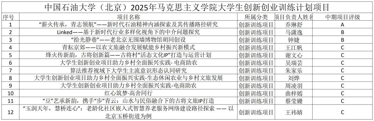 為增強學生創(chuàng)新能力,提升學生綜合素質(zhì)與競爭力,11月14日,中國石油大學(北京)馬克思主義學院在主樓B521開展大學生創(chuàng)新創(chuàng)業(yè)訓練計劃項目中期答辯。學院副院長吳建偉、教師國若家和何土鳳擔任評委。
