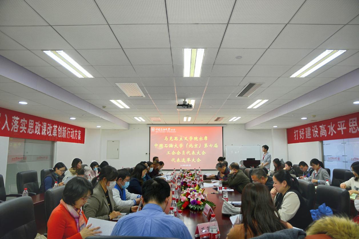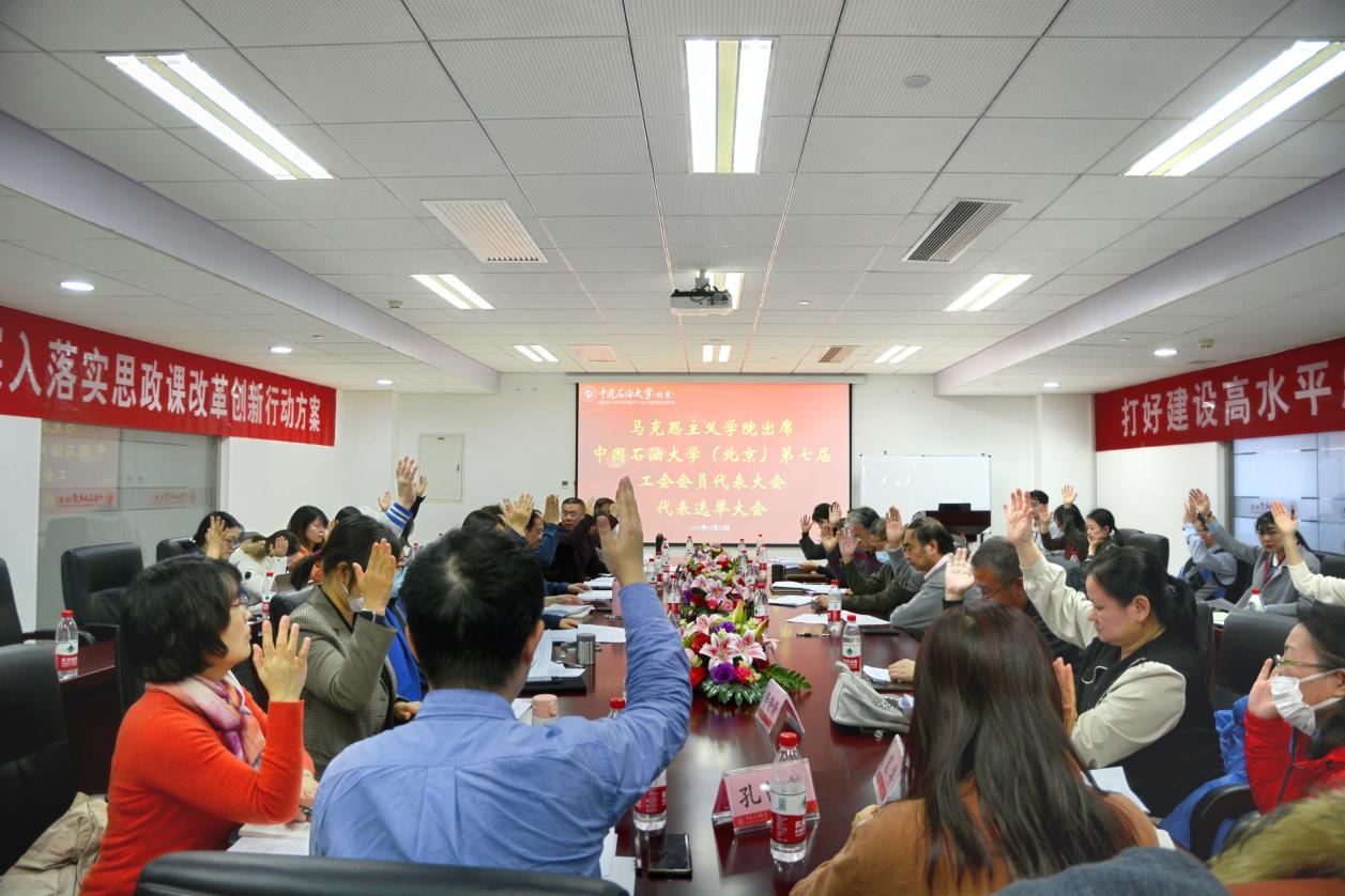 大會通過了《馬克思主義學院出席中國石油大學(北京)第七屆教職工代表大會代表選舉辦法(草案)》和《馬克思主義學院工會出席中國石油大學(北京)第七屆工會會員代表大會代表選舉辦法(草案)》、馬克思主義學院出席學校第七屆教職工代表大會代表候選人建議名單和第七屆工會會員代表大會代表候選人建議名單、以及監票人和總監票人名單。與會代表以無記名投票方式,差額選舉產生了4名出席中國石油大學(北京)第七屆教職工代表大會代表和2名出席中國石油大學(北京)第七屆工會會員代表大會代表。