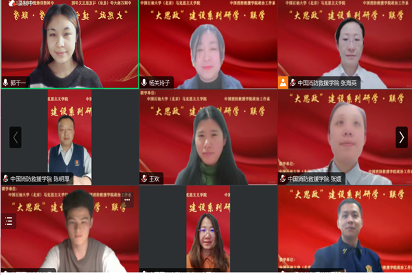 為響應(yīng)習(xí)近平總書記“大思政課我們要善用之”的號(hào)召,推動(dòng)“大思政課”建設(shè)及實(shí)踐教學(xué)改革創(chuàng)新,中國石油大學(xué)(北京)馬克思主義學(xué)院、中華女子學(xué)院馬克思主義學(xué)院和中國消防救援學(xué)院政治工作系于3月27日開展聯(lián)學(xué)活動(dòng),三校共同研討“大思政”教學(xué)新模式。