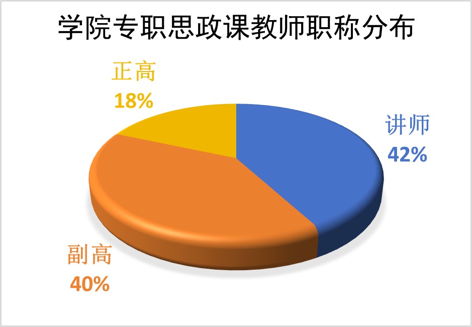 學院擁有一支學歷水平高、學緣優(yōu)勢明顯、年齡結構和學科布局合理的教師隊伍,現(xiàn)有教職員工46人,其中專職思政課教師38人(男性17人、女性21人,男女比例為1:1.2)、管理人員9人。專職思政課教師中,34人具有博士學位;業(yè)于北大、清華、人大、北師大和中國社會科學院等國內(nèi)外知名學府的教師人數(shù)占專職思政課教師總數(shù)的79%;教授7人、副教授15人,副高及以上職稱教師占比58%;45歲(含)以下21人,占比55%。