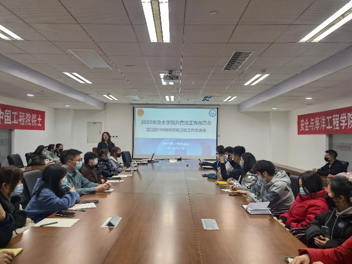 為進一步推進學院團學工作的順利開展,引領廣大團員以青春之力獻禮建團100周年,3月24日,安全學院在主樓A520召開2022年共青團工作布置會暨建團100周年慶?;顒庸ぷ鹘涣鲿?/span>,學院團委書記方百會,輔導員于曉鵬以及學院30余名團支部書記參加了此次會議。
