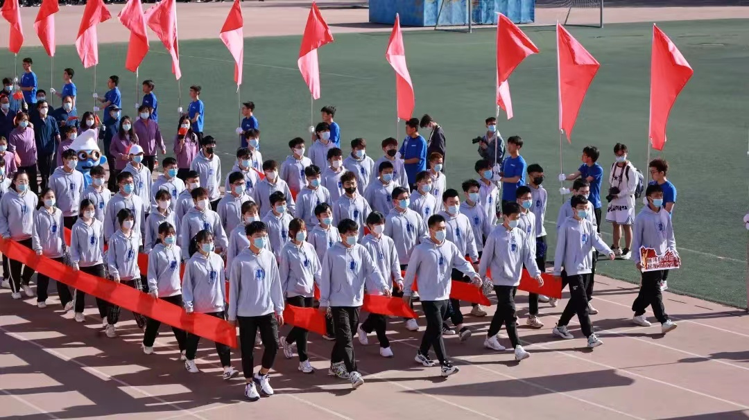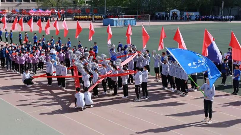 入場式上,安全學院師生代表組成的方陣邁著整齊矯健的步伐、喊著響亮的口號走進賽場,在主席臺前,48名學生代表通過紅絲帶構成“團旗”和“五角星”的圖案,以青春風采獻禮建團100周年,以青春之力喜迎黨的二十大。