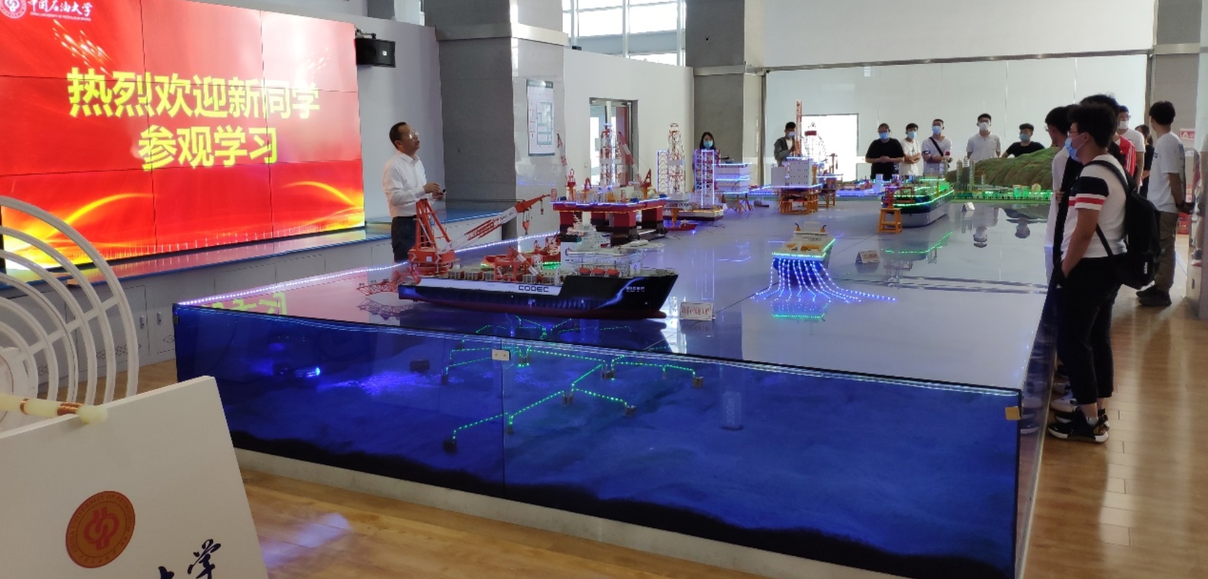 首先,朱益對新生的到來表示熱烈歡迎,并對教學演示中心做了整體的介紹。隨后詳細介紹了海洋平臺的類型、功能以及海底管道的鋪設,并結合測井系統模型,講解了測井的基本內容和方法。