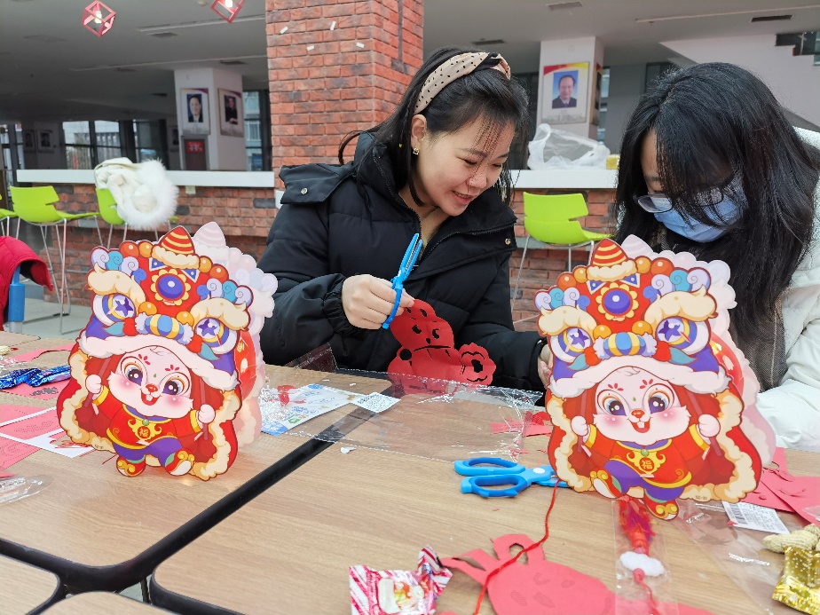 學院黨委副書記趙凱到學生實驗室與留校學生進行親切交談,團委書記方百會組織留校學生一起參觀了科學家成就展和為新時代任務塑像展,并與留校學生一起參與“剪紙迎新春 共慶幸福年”剪紙活動,在熱鬧的氛圍中感受中華傳統文化魅力。
