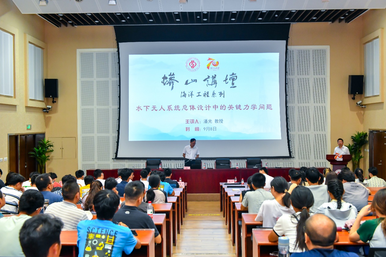 9月8日下午,中石大安全與海洋工程學院成功舉辦蟒山講壇海洋工程系列,西北工業大學長江學者特聘教授潘光應邀作了題為“水下無人系統總體設計中的關鍵力學問題”的專題報告。副校長金衍,科學技術處、安全與海洋工程學院、機械與儲運工程學院相關領導、及師生代表共150余人聆聽報告。報告會由金衍主持。