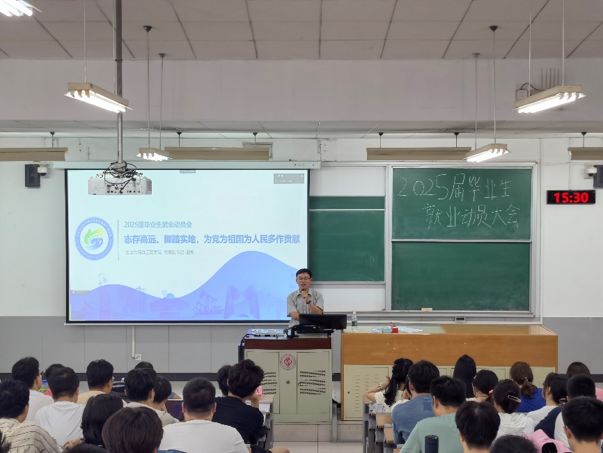 6月18日,安全學院召開2025屆畢業生就業工作動員大會,學院黨委副書記趙凱、團委書記徐云飛、2025屆畢業班輔導員于曉鵬以及2025屆全體畢業生參加了此次會議。