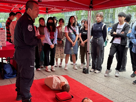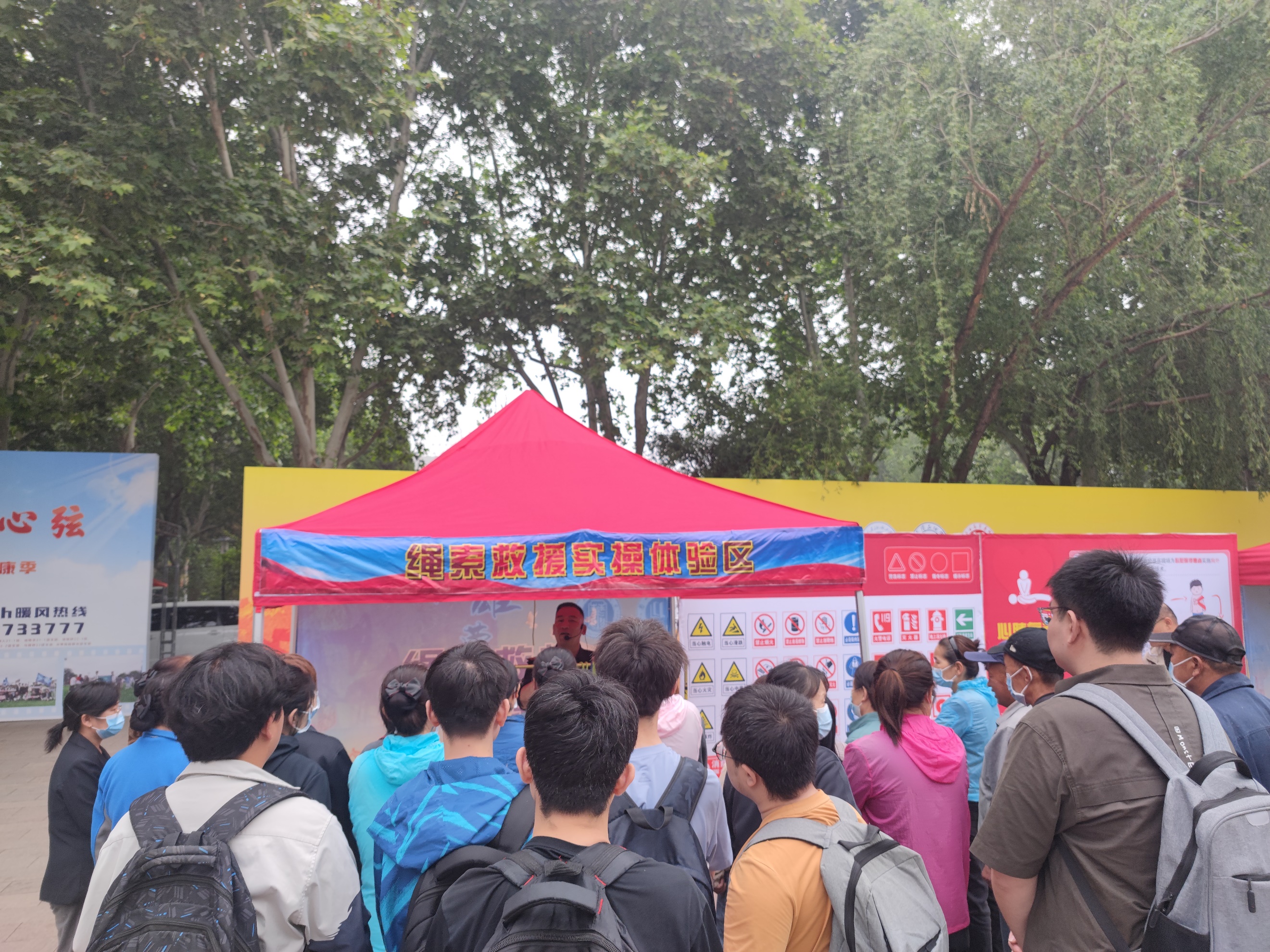 本次活動分為“應急小課堂”、“防災減災體驗”、“宣傳片教育”三個環節,現場設置了“煙熱環境模擬逃生體驗”“滅火體驗屋模擬滅火體驗”“繩索技術互動教學區”“心肺復蘇技能培訓區”以及“AED體外自動除顫儀教學區”五大體驗區。