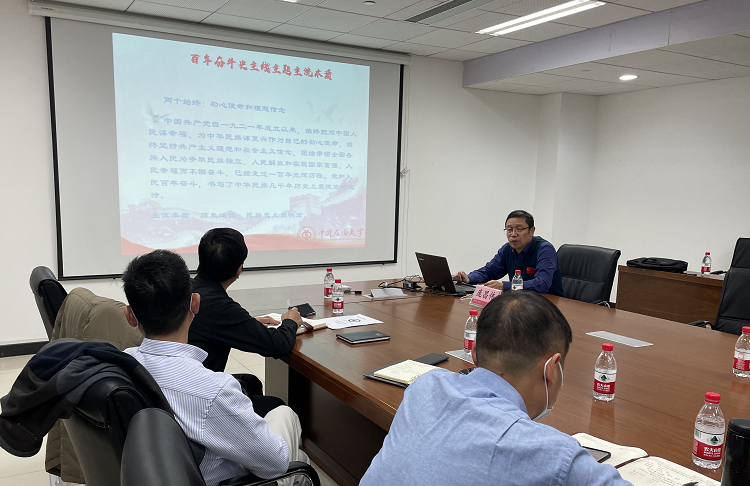 2021年11月18日,安全學院黨委在主樓A520會議室召開黨委中心組學習擴大會議,邀請馬克思主義學院副院長龐昌偉教授作《不忘初心 牢記使命 砥礪前行——學習六中全會和歷史決議精神》的專題報告。會議由學院黨委書記孫為主持,學院領導班子成員、教工黨支部支委、學生黨支部書記參加。