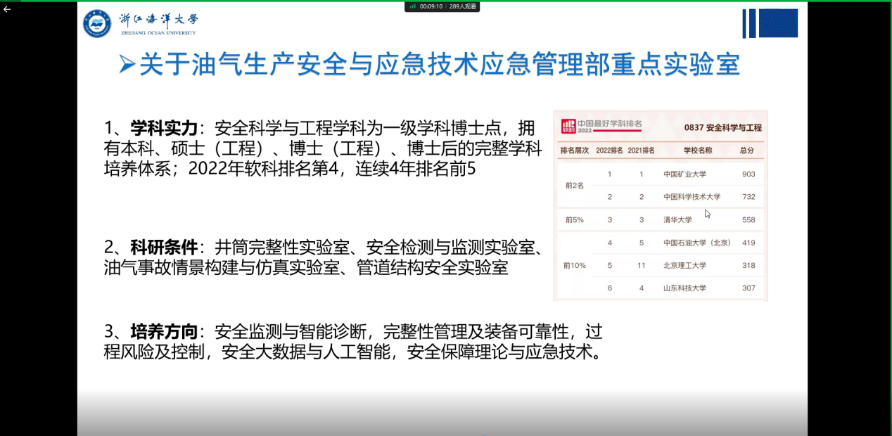 3月7日,中石大安全學院聯合浙江海洋大學開展考研復試經驗線上分享會,本次分享會由2022級安全工程專業研究生李曉丹擔任主講人,線上共400余名學生參與。
