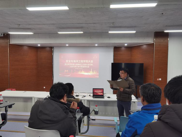 11月27日,安全與海洋工程學院在安全科技樓召開學院全體教職工大會,暨選舉出席學校第七屆教職工代表大會、工會會員代表大會代表選舉大會。學院領導班子及全體教職工參會。大會由學院黨委副書記、工會主席趙凱主持。