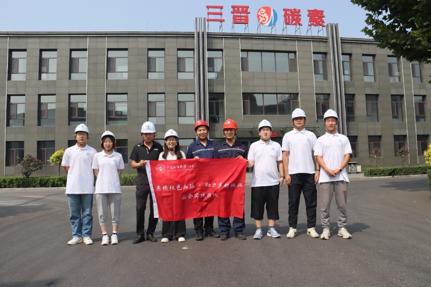 在山西三晉碳素有限公司,實踐團成員學習了陰極碳塊的原料組成、生產工藝流程、銷售情況等,并詳細了解了企業綠色低污染轉型、廢料回收處理以及環境保護等相關情況。