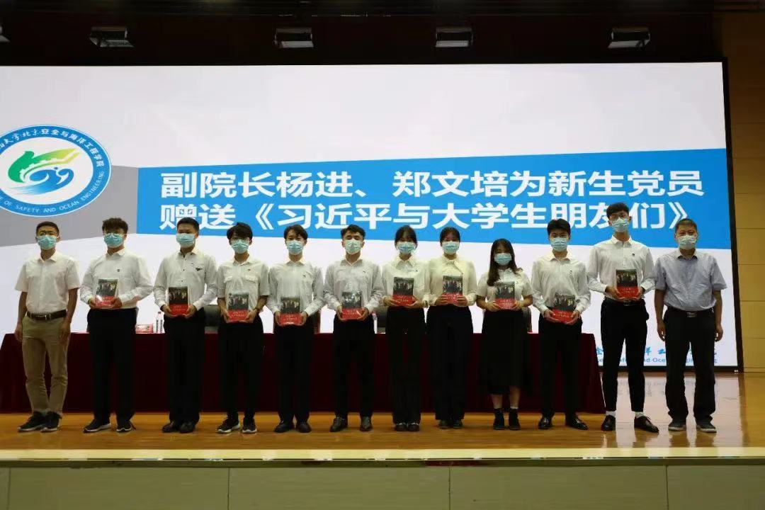 典禮末尾,由學院副院長鄭文培、楊進為新生黨員同志贈書《習近平和他的大學生朋友們》。
