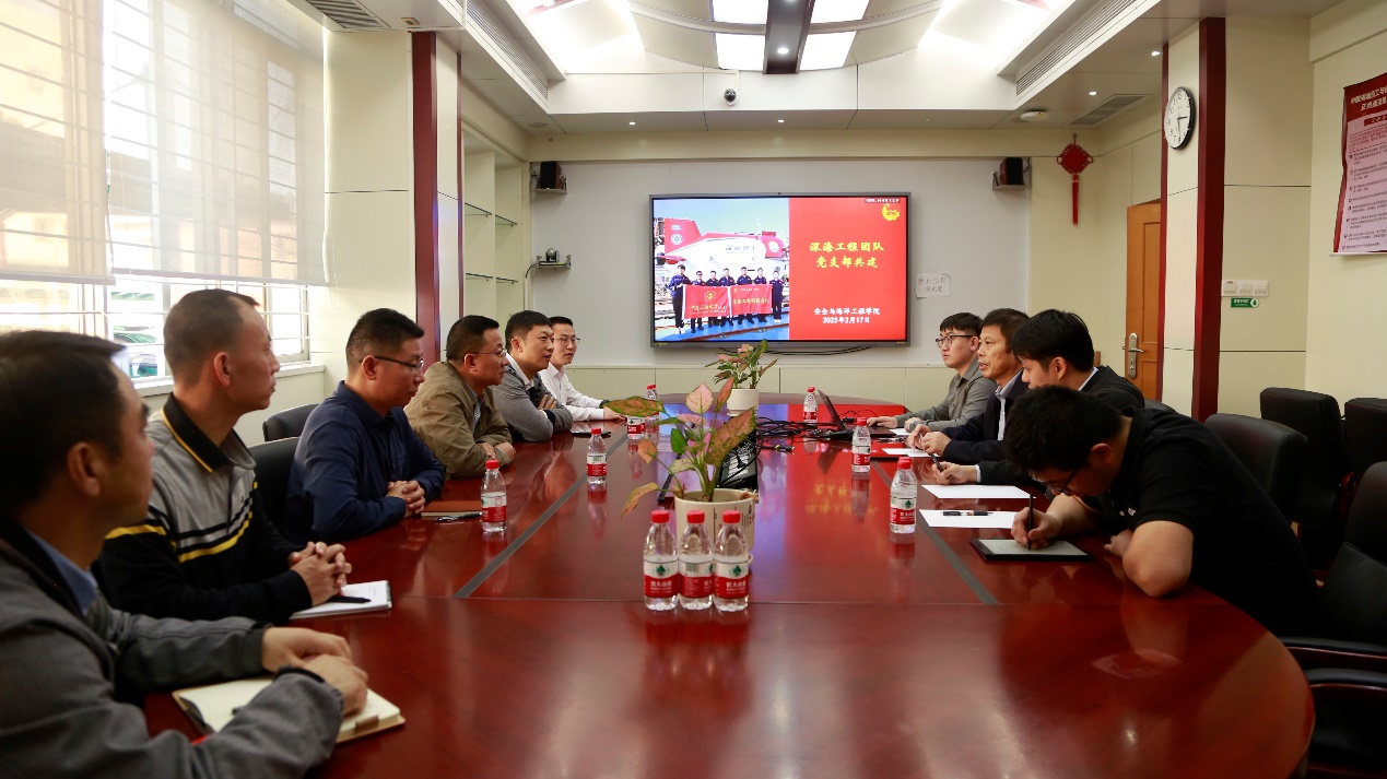參觀結束后,同中海油湛江分公司工程技術中心黃熠、劉和興、孟文波、林四元等人開展了交流,介紹了深海工程創新團隊以及黨支部的情況,介紹了人才的培養、課程的創新、近些年取得成果。黃熠表示,感謝中國石油大學(北京),感謝安全與海洋工程學院對自己的培養,希望中國石油大學(北京)可以繼續深入推進海洋油氣關鍵技術的攻關,為中海油以及湛江分公司輸送更多人才。