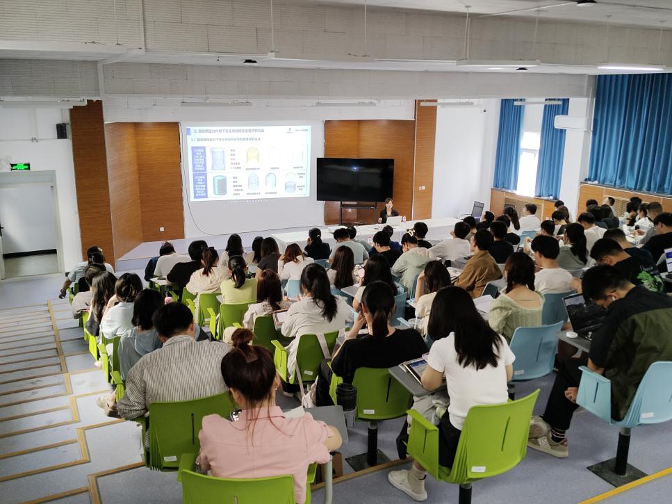 榮華表示,安全是核電發(fā)展的重中之重,一旦發(fā)生核電事故,將會給生態(tài)、環(huán)境和社會安全帶來毀滅性的破壞。核電廠結(jié)構(gòu)設(shè)施作為最重要的屏障保護(hù)結(jié)構(gòu),設(shè)計工況復(fù)雜,需要承受如大飛機(jī)撞擊和失水事故等極端情況,同時還需應(yīng)對輻照、高溫、高壓和腐蝕等嚴(yán)苛的使用條件。她結(jié)合多項典型工程應(yīng)用案例,詳細(xì)闡述了核電結(jié)構(gòu)材料在高溫、輻照和硼酸等復(fù)雜動態(tài)服役環(huán)境下的性能劣化機(jī)理,以及結(jié)構(gòu)性能分析評價和安全評價技術(shù)。報告結(jié)束后,榮華與在場師生就滲流仿真模擬、輻照損傷、結(jié)構(gòu)延壽關(guān)鍵技術(shù)等問題進(jìn)行了互動交流。