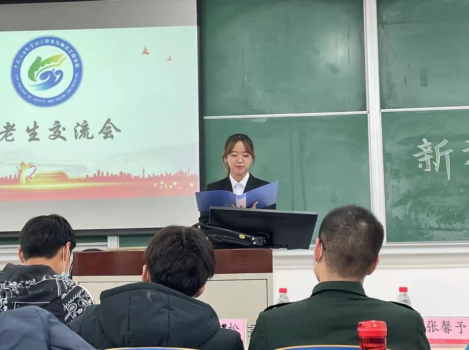 11月17日,安全與海洋工程學院在三教111成功舉辦新老生經驗交流分享會,本次分享會邀請到學校先鋒團支部支部書記黃松,退伍大學生代表孫磊,學院優秀班集體班長夏冬霖,優秀學生代表張馨予進行交流分享,會議由學生會伍可心主持,100余名同學共同參與了此次交流分享會。