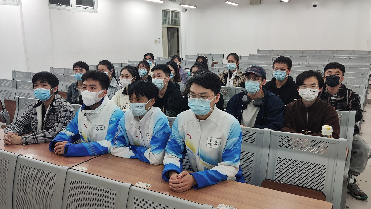 本安全第一黨支部書記馬明雨介紹黨日活動開展的背景。于龍同志以一名冬奧會志愿者的身份從個人參與志愿者動機、冬奧會志愿服務經歷以及個人感受來講述在冬奧會志愿期間的所感所想;沈明雨同志從志愿者歷程和工作內容及志愿感受講述了其在志愿者服務中的暖心瞬間、個人對于志愿者工作的所思所想,并呼吁全體黨員應參與到志愿服務的大家庭之中;馬明雨同志以“從再相逢故事中見證民族復興”為主題,從其個人的特殊成長經歷開始講述,為同學們展示了在延慶冬奧村見證的國家在發展中逐步走向富強的真實縮影。