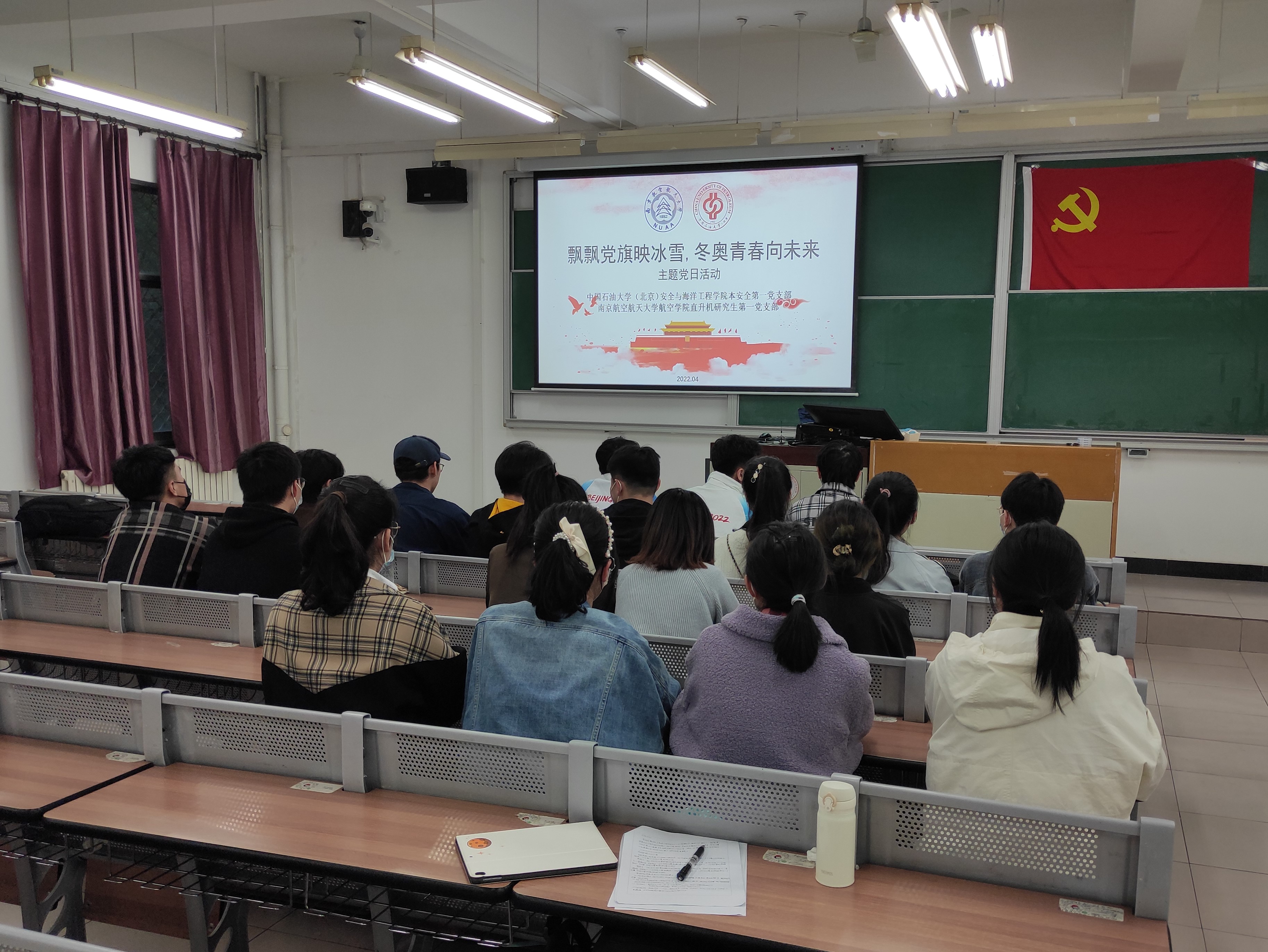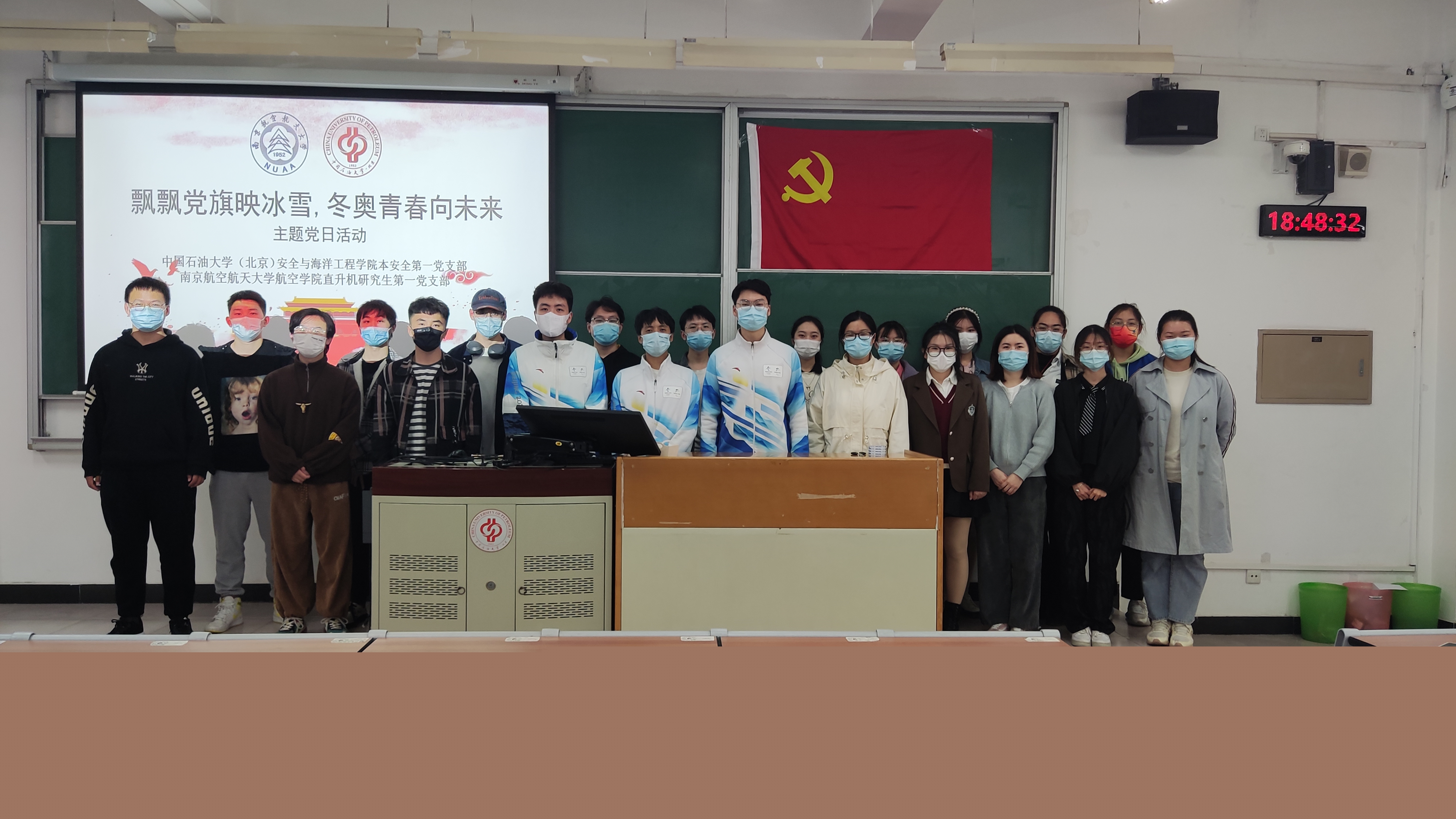 4月17日晚,中國石油大學(北京)安全學院本安全第一黨支部與南京航空航天大學航空學院直升機研究生第一黨支部聯合開展了“飄飄黨旗映冰雪,冬奧青春向未來”主題黨日活動。活動依托騰訊會議開展,以線上線下相結合方式舉辦。本安全第一黨支部書記馬明雨、直升機研究生第一黨支部書記李程磊,及各黨支部全體黨員參加了此次活動。