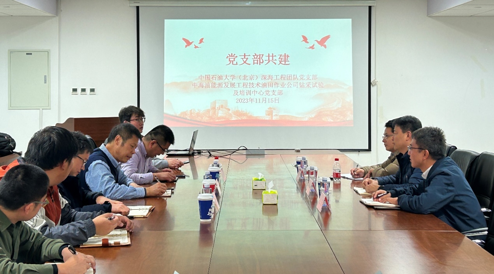 11月15日,中國石油大學(北京)安全與海洋工程學院深海工程團隊黨支部與海油發展工程技術公司井控中心培訓黨支部開展共建交流。中海油能源發展股份有限公司工程技術分公司井控中心井控黨總支副書記、巡檢辦公室主任李曉剛,中海油能源發展股份有限公司工程技術分公司井控中心培訓部經理王哲及高級培訓師張文喜,中石大安全與海洋工程學院院長、深海工程團隊黨支部書記楊進,中石大海南研究院副院長殷啟帥、深海工程團隊黨支部委員陳緒躍以及黨支部全體成員參加了活動。