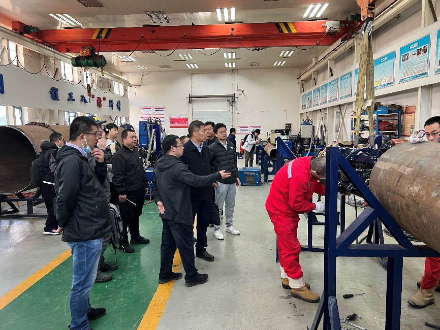 團隊參觀了殘余應力實驗室、示波沖擊實驗室、管道安裝工藝等,并同管道研究院目前技術的發展與卡脖子技術開展交流。王基翔書記表示:非常感謝石油大學的到來,還有很多卡脖子技術亟需和高校開展合作,進行聯合攻關。楊進教授表示:參觀了管道院的研究非常震撼,也會帶著目前發展的瓶頸進行深入研究,解決卡脖子技術。