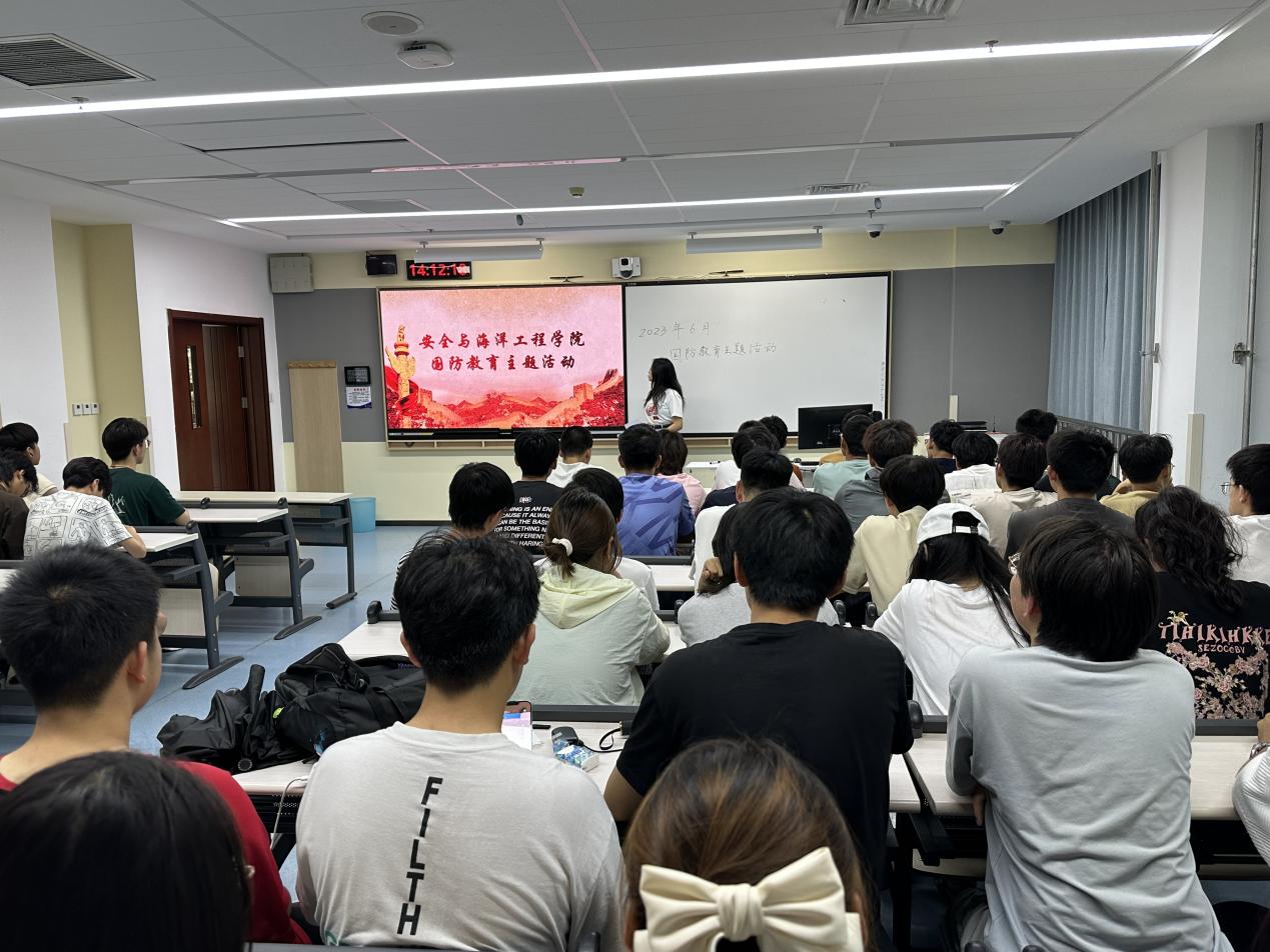 各班級(jí)、團(tuán)支部通過(guò)召開(kāi)“國(guó)防教育主題班會(huì)”、“弘揚(yáng)偉大抗美援朝精神主題班會(huì)”、“學(xué)習(xí)雷鋒精神主題班會(huì)”等主題班會(huì),引領(lǐng)學(xué)生圍繞主題,學(xué)習(xí)國(guó)防理論、國(guó)防知識(shí)、國(guó)防歷史、國(guó)防法規(guī)、國(guó)防技能,助力學(xué)生掌握基本國(guó)防知識(shí),學(xué)習(xí)必要軍事技能,樹(shù)立強(qiáng)烈國(guó)防觀念,明確自覺(jué)改造國(guó)防的義務(wù)。學(xué)院青年志愿者協(xié)會(huì)干事面向海工大一班級(jí)開(kāi)展了“風(fēng)雨蒼黃百年路,高歌奮進(jìn)新征程”主題宣講,有機(jī)融入國(guó)防知識(shí),激發(fā)學(xué)生愛(ài)國(guó)熱情,激勵(lì)學(xué)生傳承革命先輩的光榮傳統(tǒng)和偉大的民族精神,樹(shù)立為建設(shè)祖國(guó)、保衛(wèi)祖國(guó)而努力學(xué)習(xí)的人生理想。