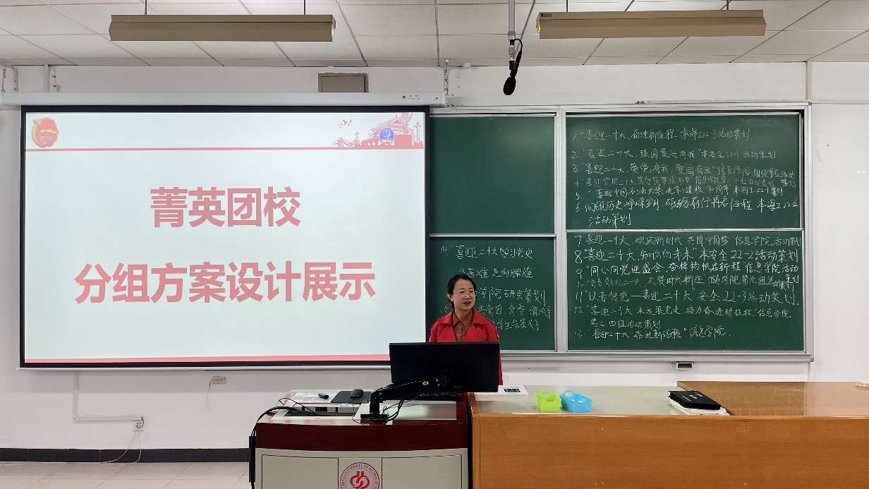 以“青視角”開(kāi)展“青學(xué)習(xí)”。為增強(qiáng)基層組織活力,創(chuàng)新團(tuán)日活動(dòng)方式,團(tuán)校組織各參訓(xùn)團(tuán)員分組開(kāi)展“喜迎黨的二十大”主題團(tuán)日活動(dòng)方案設(shè)計(jì)及展示互動(dòng)。各小組將方案設(shè)計(jì)做成海報(bào)進(jìn)行展示匯報(bào),結(jié)合專業(yè)特點(diǎn)和年級(jí)特色,分別計(jì)劃開(kāi)展“重走長(zhǎng)征路”“知識(shí)競(jìng)答”“志愿我先行”“爭(zhēng)做青年榜樣”等形式豐富團(tuán)日活動(dòng),同時(shí)將青年愛(ài)國(guó)主義、五四精神傳承、戰(zhàn)疫故事等融入到主題團(tuán)課中,不斷提升團(tuán)組織的引領(lǐng)力、組織力和服務(wù)力,激發(fā)青年活力,以優(yōu)異成績(jī)獻(xiàn)禮黨的二十大勝利召開(kāi)!