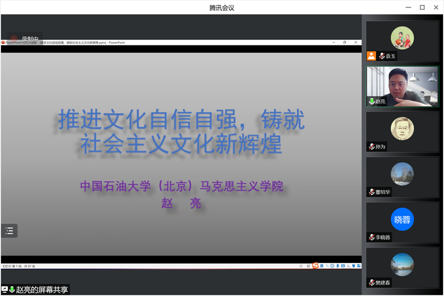 為深入學習宣傳貫徹黨的二十大精神,結合當前疫情防控形勢任務要求,安全與海洋工程學院于11月24日通過騰訊會議召開全體教職工大會。會議邀請了馬克思主義學院趙亮教授作題為“推進文化自信自強,鑄就社會主義文化新輝煌”的專題報告。學院領導班子、全體教職工共同參加了會議。會議由學院黨委書記孫為主持。