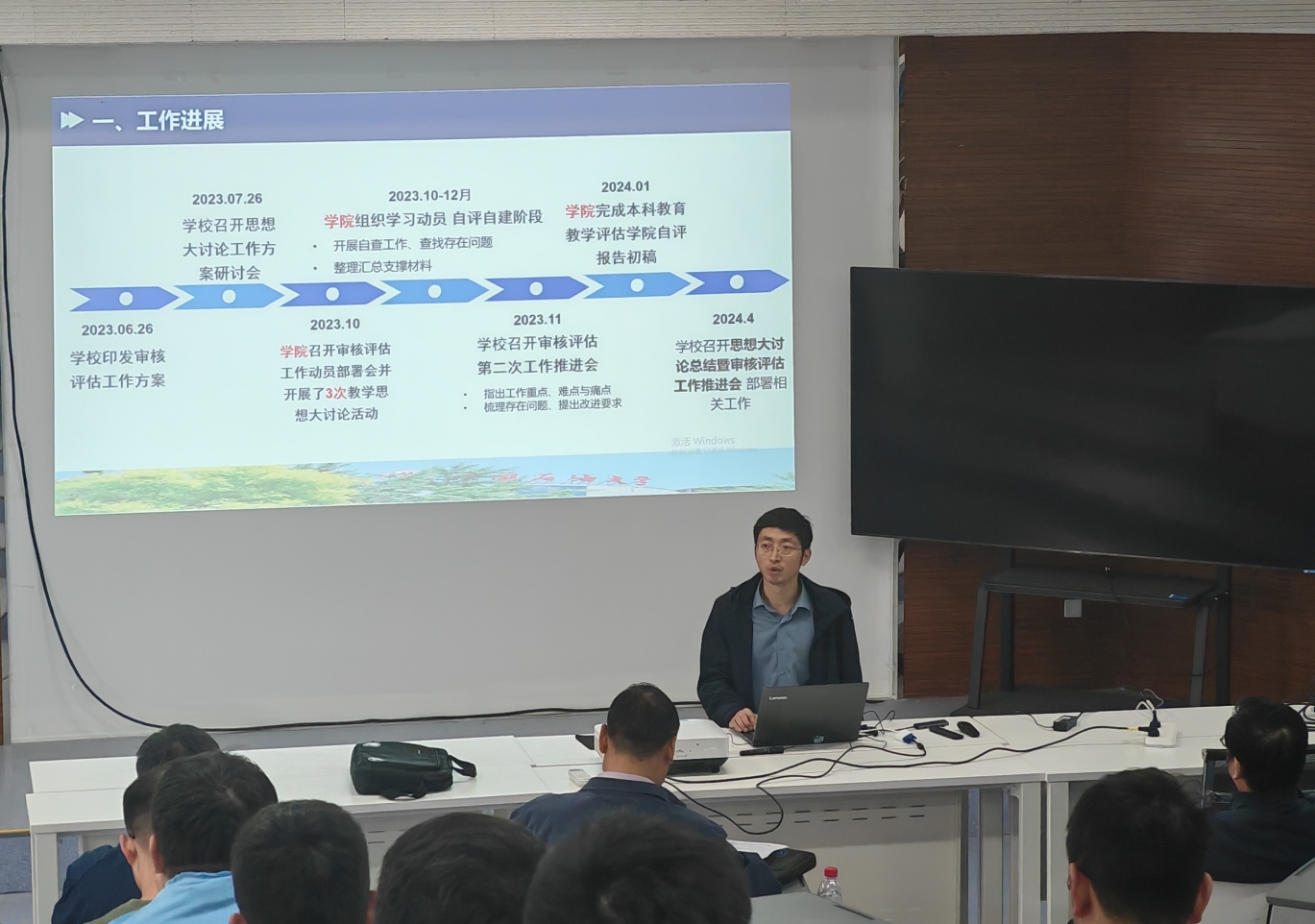 副院長鄭文培對本科教育教學審核評估工作進行再次解讀,傳達了學校本科教育教學思想大討論總結暨審核評估工作推進會精神,部署了相關工作;并強調,全體教師要抓準迎評工作思路與節奏,分級明確工作任務,形成全員參與、團結協作的工作模式。鄭文培還對2023年學院班主任、學業導師履職情況進行了介紹。