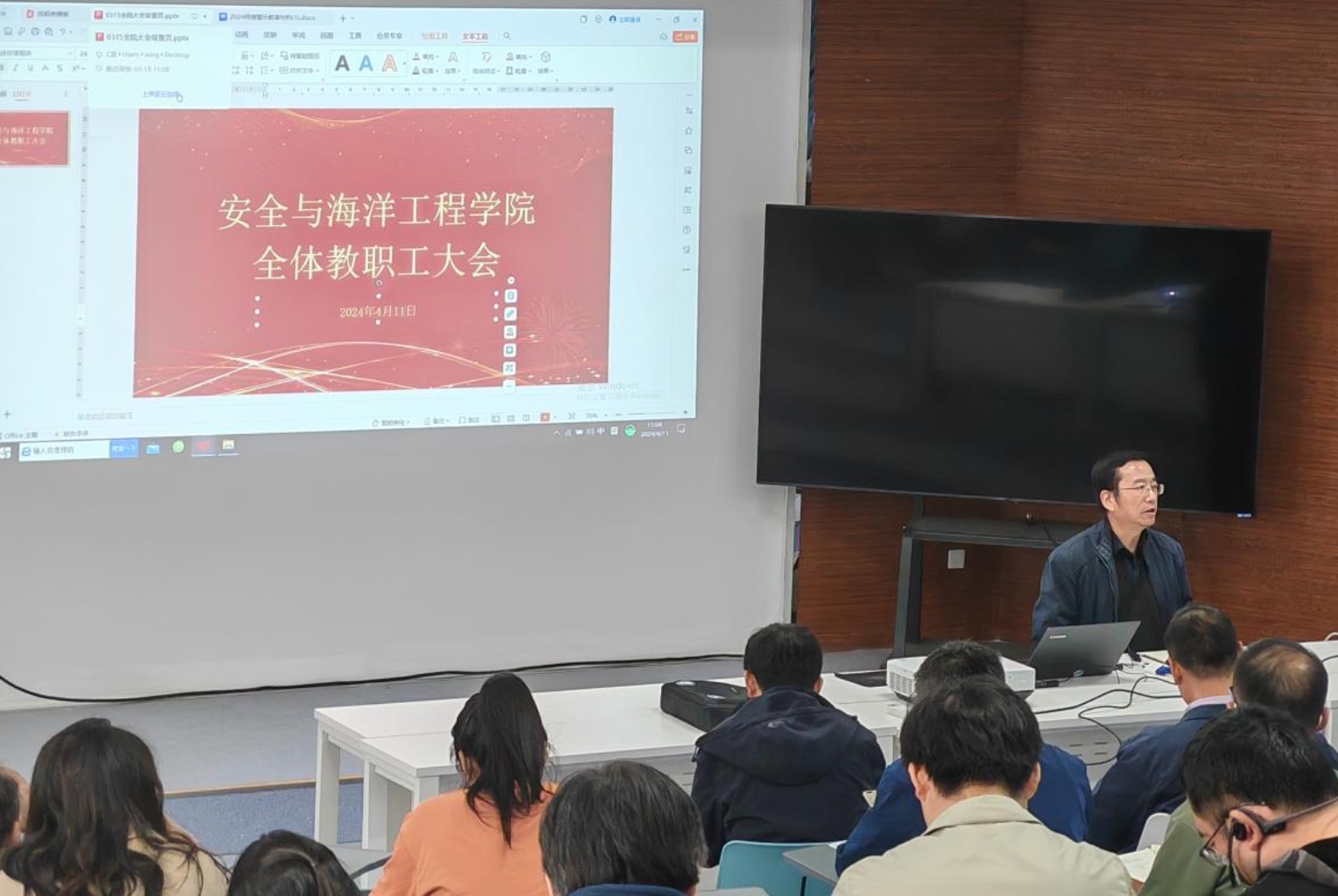 4月11日下午,安全與海洋工程學院在安全科技樓召開全體教職工大會,學院領導班子及全體教職工參會。本次會議由院長楊進主持。