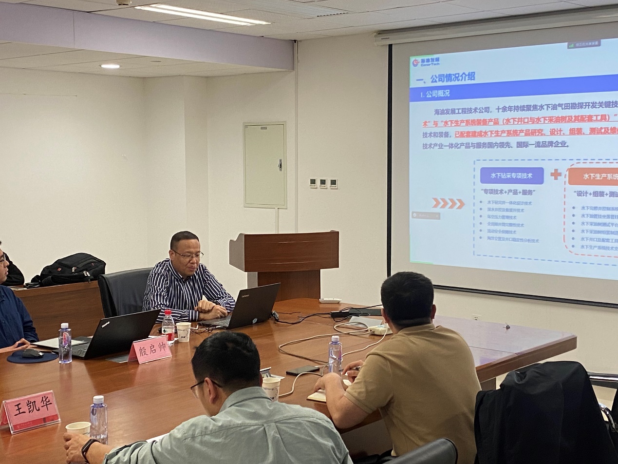 會上,海能發工程技術公司深水鉆采技術中心總經理同武軍對水下生產系統關鍵技術及國產化技術難點進行了介紹,楊進教授團隊做水下裝備研究進展及研究建議匯報,鄭文培副院長對應急管理部重點實驗室進行了介紹,岳元龍副教授進行了深海油氣田水下控制系統關鍵零部件國產化研究進展匯報,王瑩瑩教授做深海采礦團隊介紹。雙方圍繞水下生產系統關鍵技術、裝備國產化研究方向、水下控制系統關鍵裝備等問題進行了深入的探討和交流,雙方就校企“產學研用”深度融合及人才雙向培養交換了意見。未來,雙方將進一步開展交流合作,打造技術交流共享平臺和專業人才培養平臺,開拓校企協同創新和互惠共贏的新局面。
